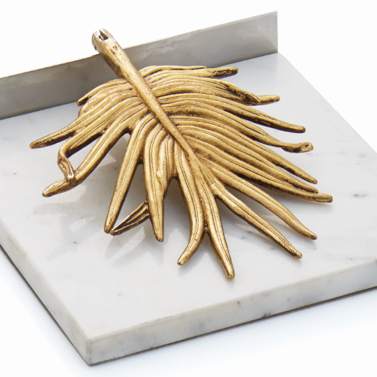 The Palm Collection is inspired by the beauty of a windswept palm tree and the perfectly imperfect shapes of woven palm leaves and fallen fronds. The warm antique gold finish and the intricate sculpted textures exude comfortable luxury and graciousness.